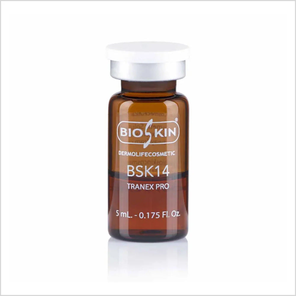 BioSkin BSK14 Tranex Pro is a targeted pigmentation treatment serum designed to support skin tone balancing and reduce the look of dark spots. This Skin care solution with Tranexamic Acid, Kojic Acid, Ascorbic Acid (C Vitamin), Nicotinamide, Rutine and high, medium and low molecular weight Hyaluronic Acid.